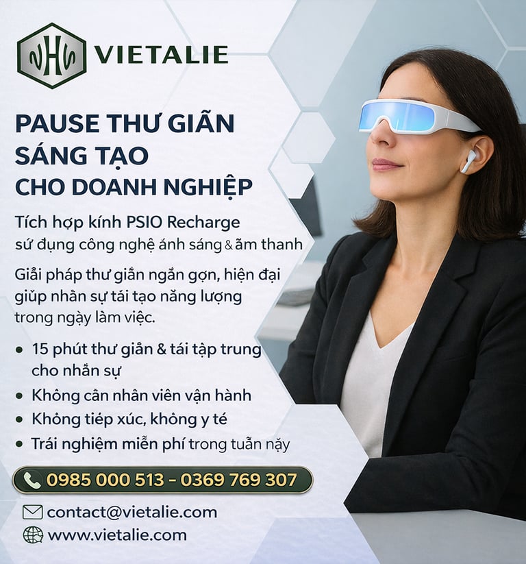 Vietalie Tech là tên thương mại của NHN VIETALIE COMPANY LIMITED, đại diện cho các công nghệ thư giãn, phục hồi tinh thần và tối ưu sự thoải mái nhận thức có nguồn gốc từ châu Âu, phù hợp cho cá nhân và tổ chức.